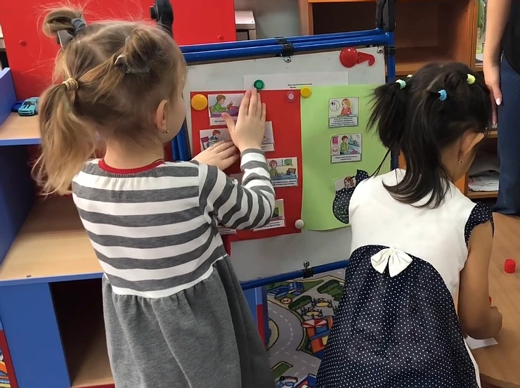 Воспитателем моделируется ситуация, в которой дети сталкиваются с затруднением в деятельности: для достижения своей «детской» цели ребенку требуется выполнить «пробное» действие. Воспитатель с помощью системы вопросов («Получается?» – «Почему не получается?») помогает детям приобрести опыт фиксации затруднения и выявления его причины. Воспитатель отвечает за безопасность проводимого опыта, оценивает правильность действий воспитанников, помогает в формулировке выводов.