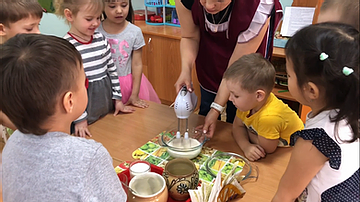 Беседа по содержанию сказки -Скажите, в сказке Петушок, какой? (торопливый, капризный непослушный) - Кто помог петушку? Что можно сказать про курочку, она какая? (курочка, добрая, заботливая) - Знала курочка, как помочь петушку? (маслицем она смажет горлышко, бобовое зернышко и проскочит) - Давайте вспомним, к кому обращалась курочка за помощью (к хозяйке, корове, хозяину и кузнецу) Дидактическая игра «Закончи предложение» (Приложение № 1) Закончите мою мысль словами из сказки: - Курочка пошла к хозяйке, чтобы… - Курочка пошла к коровке, чтобы… - Курочка пошла к хозяину, чтобы. - Курочка пошла к кузнецу, чтобы… - Хотите узнать, как в старину готовили масло? Просмотр видео «Как готовили масло в старину» (Приложение № 2) - О чем вы сейчас узнали? Что вам запомнилось? -Ребята, какие еще молочные продукты вы знаете? - В чем их польза для человека? (Молочные продукты кости укрепляют) - Сливочное масло - это полезный продукт? Куда можно добавить масло? Почему говорят – «Кашу маслом не испортишь»? -Хотите сами приготовить масло? Опыт «Сливочное масло» На столе горшочки со сливками и молоком. - Что в горшочках? (Дети высказывают два предположения — сливки и молоко). - То, что в горшочках - густое или жидкое? (Мнения детей разделились) - Как же нам это проверить? (на столе два прозрачных стакана). - А если содержимое первого горшочка перелить в стакан. Как оно льется? (льется легко, быстро) - Что это такое? (жидкое молоко). - Что же тогда во втором горшочке, густое оно или жидкое? -Перелить в стакан получается? (не льется) - В горшочке сливки. Сливки густые. - Как вы думаете, из чего нам лучше масло сделать — из молока или из сливок? Почему? - Сливки густые, а молоко жидкое. -В старину дети, такие же, как и вы, садились рядком, как мы сейчас, и начинали сливки в масло взбивать — вот так (показывает). Но если мы начнем взбивать масло ложкой, нам понадобится очень много времени, поэтому мы попробуем взбить масло с помощью этого прибора. Кто-нибудь знает, что это? (Это миксер). - Это современный прибор, он нам поможет. Давайте выложим сливки из горшочка в чашу. Сейчас будьте осторожны — включаем миксер. Что делает миксер? - Миксер взбивает сливки, во много раз быстрее, чем мы бы это делали ложкой. Не зря в старину говорили: «Нелегко масло взбить, сто потов нужно пролить». -Что у нас получилось? Какое масло? (масло желтое, вкусное, гладкое, ароматное). - Проведите указательным пальчиком по кусочку масла. Что вы заметили? (Пальчик по маслу скользит). -Значит масло какое? (Масло скользкое). - Поэтому петушку маслицем горлышко смазали, бобовое зернышко, которое застряло у него в горлышке, проскользнуло. -Мы наше масло уберем на холод, а уже завтра сможем добавить его в кашу. |