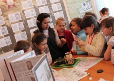 Деятельность участников школьного музея совместно с учителями и учащимися зародили традиционные мероприятия школы, на которых ребята рассказывают о подвигах своих предков, об исторических событиях Великой Отечественной войны в творческой форме. Школьные конкурсы «Дедушкина медаль», «Патриот», дебаты «Нужна ли армия», митинг «Блокадный Ленинград» (флэшмоб). На интеллектуальных играх «Салют Победы» мои воспитанники могут продемонстрировать знание исторических событий войны через фильмы, песни, поговорки и героев города. Школьники с удовольствием смотрят отечественные старые и новые художественные и документальные фильмы о Великой Отечественной войне, героях-новосибирцах и боевых действиях в Афганистане и Чечне.