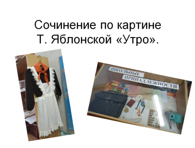 А при написании сочинения по картине Т. Яблонской «Утро» мы используем экспозицию «Школьная форма ученика Советской школы».