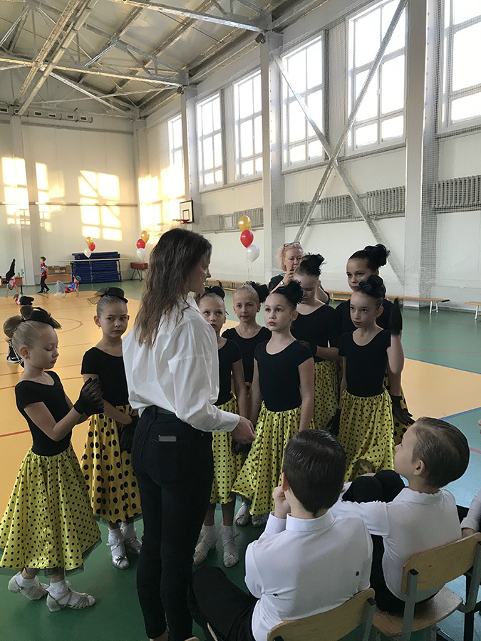 Чтобы разнообразить педагогический процесс, мы используем видеоматериалы из социальных сетей, изучаем онлайн-занятия от ведущих спортсменов мира, организовываем «челенджи» среди педагогов и учащихся. Дети с любопытством смотрят на работу чемпионов в танцевальном зале через экран монитора. Для них как будто приоткрывается кулиса, и они видят, сколько труда и усилий прикладывают спортсмены для достижения высокого результата.