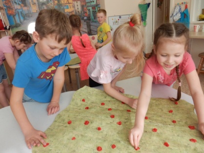 В нашей группе «Клубничка» более половины детей с различными нарушениями речи. Игры в театр помогают таким детям развивать мимику, согласовывать речь с движением, имитировать голоса животных, произнося правильные звуки, способствуют более качественной работе над выразительностью речи. В группе созданы все условия для развития творческой активности детей: пальчиковый театр, театр на фланелеграфе, куклы – бибабо. В свободное время дети любят импровизировать по собственному замыслу, используя наряды из уголка ряженья.