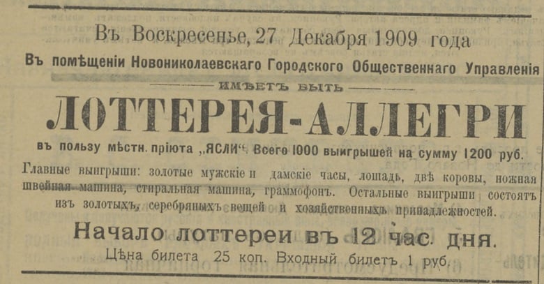 Рис. 5. Благотворительная лотерея приюта «Ясли»