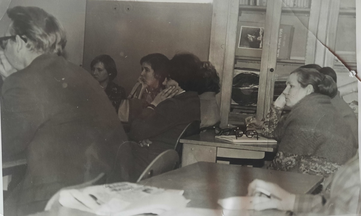 А. М. Разоренова в кругу коллег на совещании педагогического коллектива