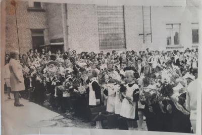 Линейка 1 сентября в честь Дня знаний в школе № 143 г. Новосибирска, 1960–1970-е гг.
