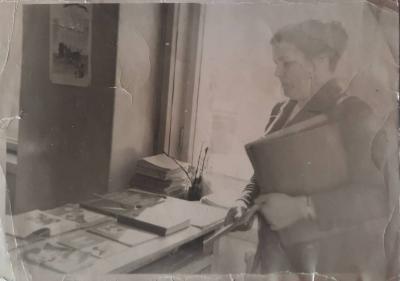 Анна Мироновна в своем школьном кабинете