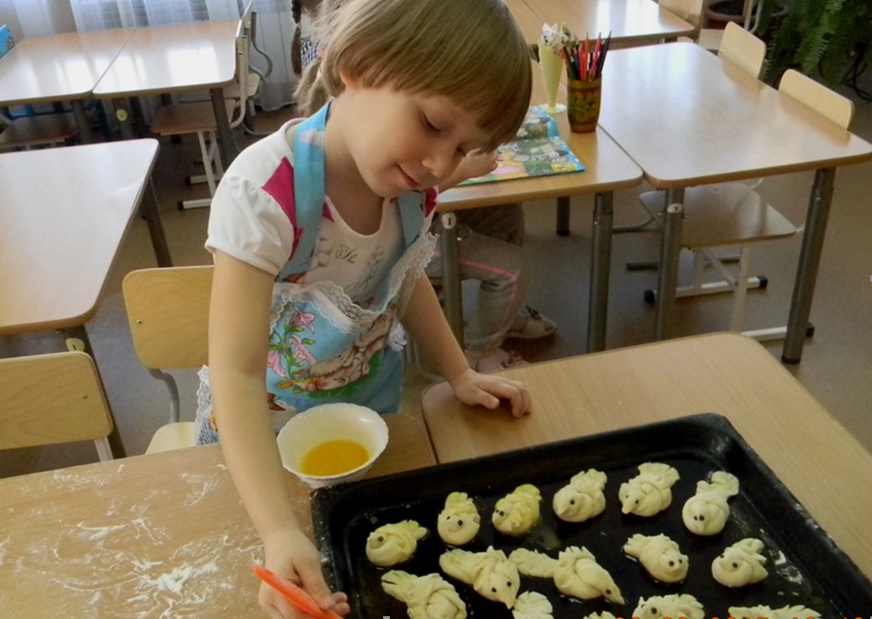 Беседуя с детьми на тему «Перелетные птицы», Саша назвала жаворонка. Сказала, что они с бабушкой лепили жаворонка из теста. И не просто лепили, а бабушка рассказала историю о жаворонке, как о почитаемой птице, вестнике весны, и о том, что в ранние времена крестьяне предсказывали по этим птицам погоду. Дети предложили узнать историю жаворонка. Так и родился проект «Жаворонки-веснянки». С детьми мы выяснили, что с древности у славян существовала вера в то что 22 марта – в день весеннего равноденствия, из теплых стран прилетает 40 разных птиц, и первой из них – жаворонок. Наши далекие предки считали, что для ускорения прихода весны ее нужно позвать, попросить прийти, покликать – отсюда слово «заклички». Желая приблизить это событие, хозяйки пекли из теста фигурки птиц с распахнутыми крыльями, вставляя глазки из черемухи или изюма. Ребята предложили выучить заклички, и слепить жаворонков из теста. Мы ходили с детьми на кухню, где смотрели, как пеклись наши жаворонки и учили параллельно правила поведения и безопасности на кухне.
