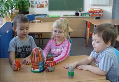 А старшие дети очень любят отгадывать загадки, объяснять пословицы и поговорки, инсценировать сказки, играть в народные игры, рассказывать небылицы. Предлагая детям пословицы и поговорки, выбираю те, которые близки по смыслу и пониманию детей. В группе есть картотека «Русские народные потешки», где ярко и в самобытном стиле русского народа раскрыта их суть, главная мысль. Также в группе есть различные виды театров по сюжетам русских народных сказок, «Уголок ряженья» с костюмами для инсценировок. С детьми подготовительной группы мы ставили сказку по правилам дорожного движения «Вовка в тридевятом царстве». На конкурсе по правилам дорожного движения я заняла третье место в районе, моя работа была основана на пословице: «Тише едешь, дальше будешь».
