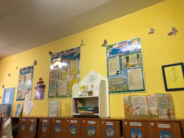 Работая в детском саду, я понимаю, что посещение группы начинается с приёмной, поэтому здесь в основном и размещается вся необходимая информация для родителей. В данном случае я прибегаю к наглядно-информационной форме работы путём размещения информации о возрастных особенностях детей, о мероприятиях, проводимых в ДОУ, о режиме дня, расписании занятий, об антропометрических данных детей и др. Кроме этого, в приёмной размещаю фотографии детей, организую выставки творческих поделок, что показывает родителям разнообразную, интересную и плодотворную жизнь детей в детском саду. Также к наглядно-информационному методу можно отнести так называемые папки-передвижки, буклеты, листовки. Здесь педагогу нужно заранее продумать тему и оформление данных наглядных пособий, учитывая интересы и актуальность для родителей. В приёмной своей группы я также организовала читательский уголок для родителей и детей, который носит консультативно-познавательный характер. Здесь я разместила литературу современных и классических авторов по вопросам воспитания детей, а также книги для чтения родителями детям. Здесь каждый может взять понравившуюся книгу домой и, прочитав, вернуть её. Организованный мной читательский уголок пользуется большой популярностью среди родителей.