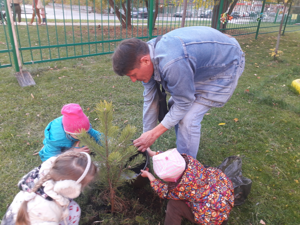 Совместная деятельность детей и взрослых доставила массу приятных моментов, каждый вносил свой вклад в озеленение территории. Дети с большим удовольствием помогают взрослым выкапывать ямки, придерживать саженцы и поливать их водой.