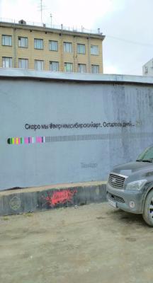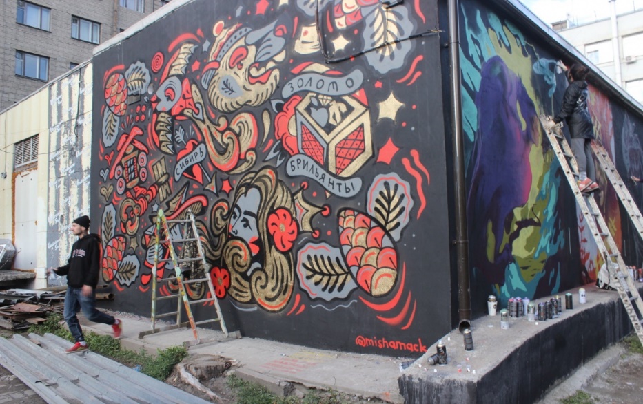 В 2016 г. на выходе из Первомайского (Театрального) сквера в Центральном районе обычная стена стала местом «паломничества» горожан. Новосибирский художник Степан Деревянко совместно с художниками-единомышленниками из других городов создал граффити «Я из Сибири» (фото 3). Позднее оно стало не только брендом одежды, но и брендом нашего города. Интересно, что сами художники не ставили перед собой цель создания неофициального символа города. Тем не менее, скоро произведение уличного искусства стало популярным среди горожан, которые наделили его смыслом. Оно стало манифестом «сибирского патриотизма».
