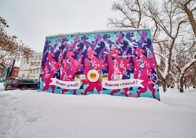 Этот проект – дань «традициям» и «национальной идентичности» – реализовался в рамках фестиваля «Я из Сибири», который в 2017 г. проходил во второй раз. Над произведением работали художники из 10 городов, арт-объект создавался восемь дней! Как рассказывает один из авторов культурного объекта, в последние дни работы приходилось постоянно отвечать на вопрос жителей: «Когда доделаете?». За несколько часов до конца работы над картиной возле трансформаторной будки собралась толпа новосибирцев, чтобы первыми увидеть любимых с детства персонажей. Место стало популярным среди горожан и обрело статус народной достопримечательности!
