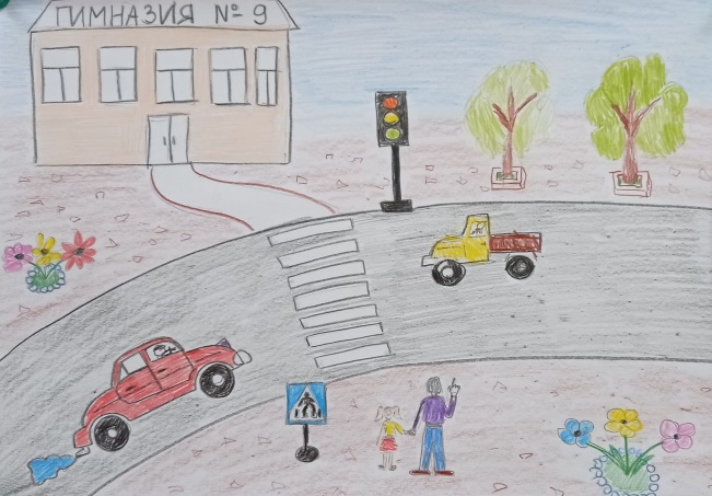 В гимназии № 9 правилам дорожного движения уделяется большое значение. Ежедневно с учениками перед окончанием уроков проводятся пятиминутки безопасности, на которых дети с первого класса запоминают, что дорожное движение начинается уже с того момента, когда переступаешь порог подъезда дома, а не с проезжей части. Учителями начальных классов озвучиваются наиболее опасные участки – нерегулируемые перекрестки, узкие тротуары, подъезды грузового транспорта к магазинам, расположенным возле гимназии, припаркованные автомобили. Ведь детское мышление таково, что учащиеся начальных классов только учатся оценивать скорость движения автомобиля, приближающегося к ним, а, следовательно, могут недооценить опасность или вовсе не предвидеть ее. Из-за невысокого роста водители не всегда могут вовремя увидеть опасность на дороге в виде ребенка. Также обязательно педагоги гимназии обращают внимание на возникающие опасности при посадке и высадке из общественного транспорта, повторяя ежедневно, что обходить стоящий автобус нельзя, нужно дождаться, пока транспорт отъедет, и только затем переходить дорогу по пешеходному переходу.