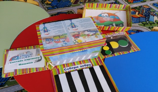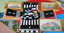 Материалы: пешеходная дорожка «Зебра» из хлопчатобумажной ткани, которая находится в центре мэджик - бокса, игрушечные машинки.