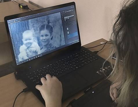 В своей работе я активно взаимодействую с родителями в рамках социального проекта «Семейный альбом». С 2020-2021 учебного года проект успешно реализуется в творческом объединении «Арт лайн» по направлению компьютерная графика Центра внешкольной работы «Галактика». В рамках учебных занятий дети занимаются реставрацией и ретушью фотографий из семейных альбомов при помощи графических редакторов и нейросети.