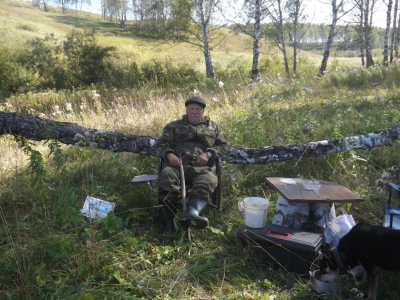 А. С. Марченко на рыбалке на месте бывшей деревни Сухостреловой