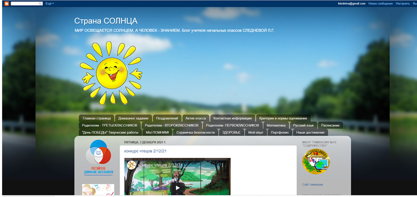 Блог «Страна СОЛНЦА» (http://solnishko18.blogspot.com/) создан в 2011 году, он регулярно обновляется. В нём отражена вся важная и необходимая информация.