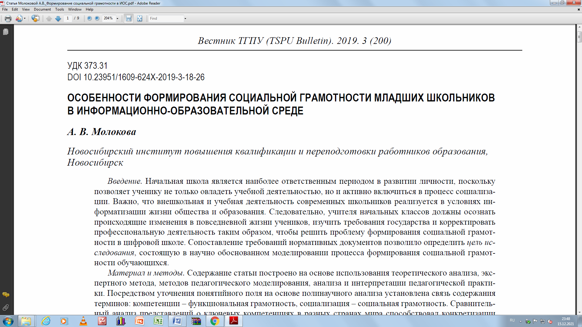 3. Молокова А.В. Муниципальное методическое объединение учителей: организация и обеспечение эффективной деятельности // Непрерывное образование в контексте Будущего. Сборник научных статей по материалам IV Международной научно-практической конференции. Москва, 2021. С. 386-392.