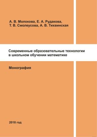 3. Молокова А.В., Рудакова Е.А., Смолеусова Т.В., Тихвинская А.В. Современные образовательные технологии в школьном обучении математике (монография). – Новосибирск: НИПКиПРО, 2018. 158 с.