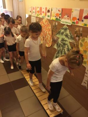 Инструктор: На нашем пути находится мост, мы должны по нему пройти. Листочки указывают путь к следующему заданию.