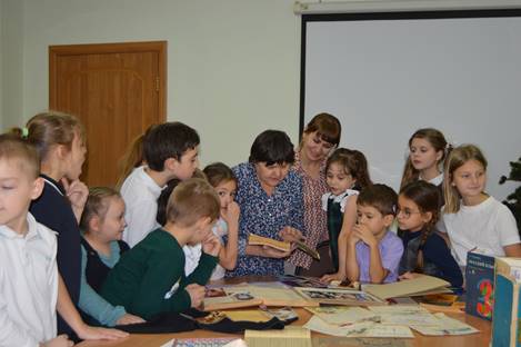Экскурсию посетили все классы прогимназии. Ребята с радостью смотрели на необычные для них предметы – счеты, точилки, фильмоскопы, ручки и чернильницы, портфели.
