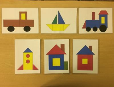 затем из предложенных картинок выбирает ту, которую можно сложить из данных фигур