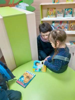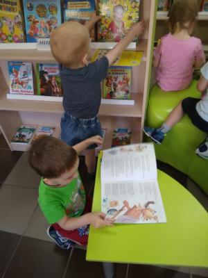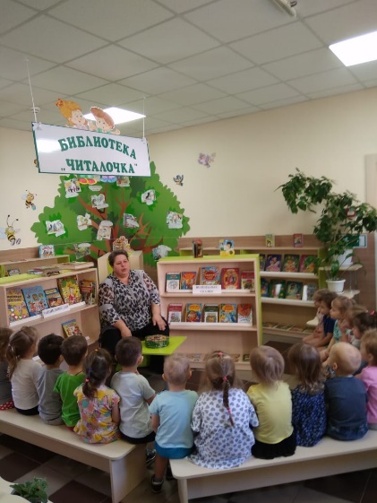 В игровой форме библиотекарь проводит экскурсию по пространству библиотеки, знакомит с правилами пользования книгами, показывает места книжных выставок. В библиотеке проходят литературные чтения. С детьми читают и разыгрывают сказки с помощью разных видов театра. Ребята видят возможность выбора из большого количества художественной литературы, учатся правильному обращению с книгой и многому другому. Посещение библиотеки вызывает интерес к знакомству с художественной литературой, воспитывает грамотного читателя, который любит и понимает книгу.