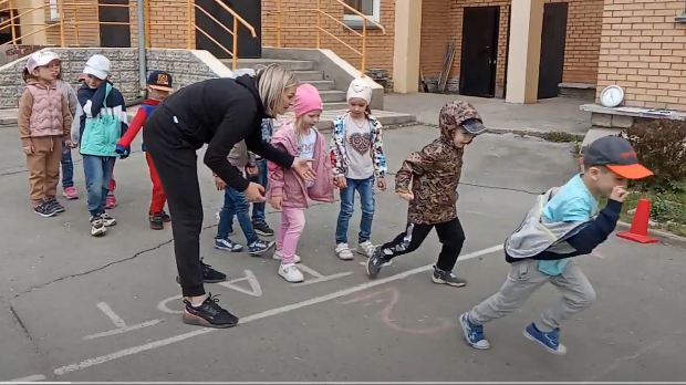 Раз в неделю занятие по физической культуре проходит на улице. На этом занятии закрепляем навыки, приобретенные в зале (прыжки, бег с опережением, попадание в цель и т.п.). Кроме различных оздоровительных задач прогулки на улице помогают решать с воспитанниками различные задачи нравственного воспитания.