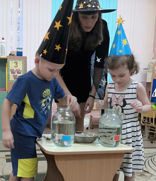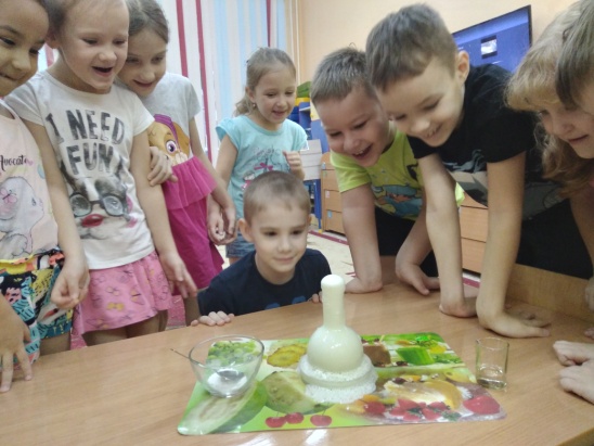 Дети с таким удовольствием экспериментировали: смешивали различные вещества, нагревали, охлаждали, красили, трогали и наблюдали, что не могли остановиться и продолжали экспериментировать дома вместе с родителями, заряжая их своим интересом. Свои самые интересные опыты ребята с родителями снимали на видео, которые затем смотрели в группе с остальными детьми.