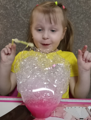 В течение недели воспитатели совместно с детьми проводили различные опыты и эксперименты. В группах были организованы мини–лаборатории с различными материалами для исследований и экспериментирования, в которых дети с помощью педагогов провели различные опыты и эксперименты с водой, молоком, воздухом, бумагой, магнитами: «Лава-лампа», «Вулкан», «Невидимые чернила», «Рисунки на молоке», «Живые червячки», «Цветные гейзеры». Самостоятельно изготовили слайм, мыльные пузыри, шипучие «бомбочки» для ванны.