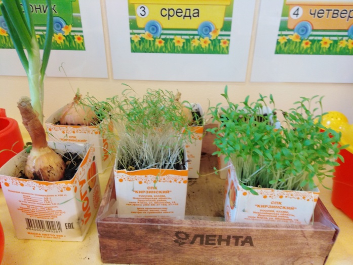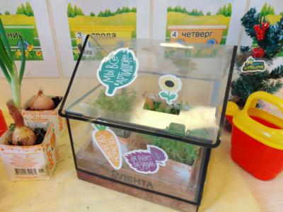 Для успешной реализации поставленных задач необходимо было создать соответствующую предметно-развивающую среду по теме проекта. В этом нам помогли родители. Благодаря им у нас в группе появилась небольшая теплица, семена салата, лука, кориандра, укропа, лейки (для полива растений), посадочная земля.