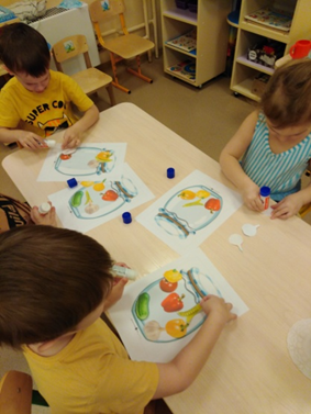 Во время проекта мы с детьми занимались творчеством, делали аппликацию «Овощи в банке». На занятии ребята узнали о пользе овощей, помогли зайчатам «законсервировать» их, чтобы они не испортились и долго хранились.