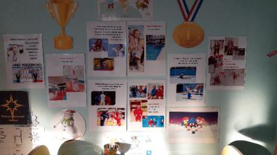 В группе созданы центры активности, которые способствуют сохранению и укреплению здоровья воспитанников. В центре спорта оформлен стенд «Наша гордость» с фотографиями известных спортсменов и детей нашей группы, которые занимаются спортом: плавание, вольная борьба, художественная гимнастика, каратэ. Это стимулирует детей, привлекает к занятию спортом.