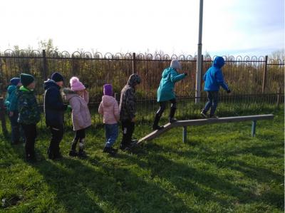 Проведение подвижных игр на свежем воздухе во время прогулок благоприятно сказывается на организме ребёнка. Так, в весенне-осенний период, гуляя на солнце, дети получают запас витамина Д, а зимой хороший закаливающий эффект. Во время прогулок на свежем воздухе дети играют в такие игры, как «Салки», «Колокольчик стоп», «Прятки», «Мяч соседу», «Пустое место», «Классики», «Метко в цель», дружно лепят снеговиков, играют в снежки, катаются с горок.