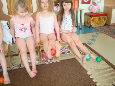 – упражнения и игры в сухом бассейне (рефлексотерапия, профилактика плоскостопия);