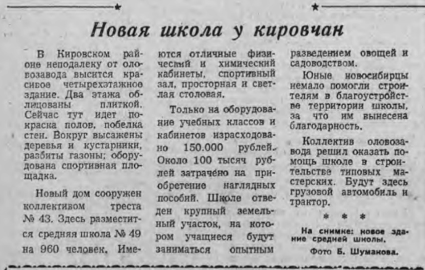 49-я средняя образовательная школа. Заходишь в школу, на втором этаже учились начальные классы. И библиотека здесь же была, на втором этаже. И вот эти классы были по стенам, по бокам. А большой коридор пребольшой, как зал. И когда звенел звонок с урока, все выбегали, и всем хватало места бегать, играть, скакать.