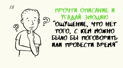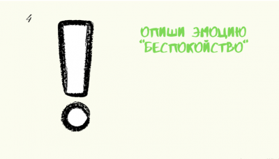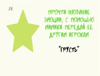 Карточки с заданиями представляют собой набор действий, которые необходимо совершить участнику: описать эмоцию с помощью мимики, передать эмоцию через словесное описание, прочесть описание эмоции и угадать ее [Рисунок 2].