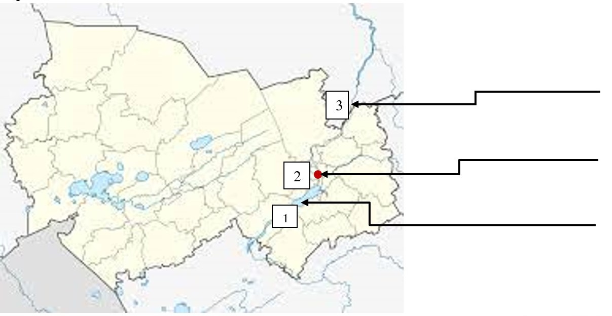 Перед тобой карта Новосибирской области. Определи объекты, отмеченные стрелочками. Подпиши названия.