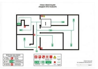Изучи план эвакуации. Используя условные обозначения на карте: