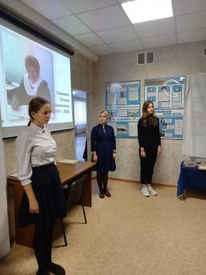 Вспомнили тех ветеранов труда, кто уже не работает в школе: Хмелевскую Тамару Григорьевну, Марсакову Валентину Николаевну, Петрову Людмилу Васильевну, Коновалову Зинаиду Михайловну, Васильеву Валентину Васильевну. Именно они стояли у истоков нашей школы и остались верны ей на долгие годы. Благодаря их высокому уровню профессионализма, творческой активной деятельности учащиеся достигали высоких результатов.