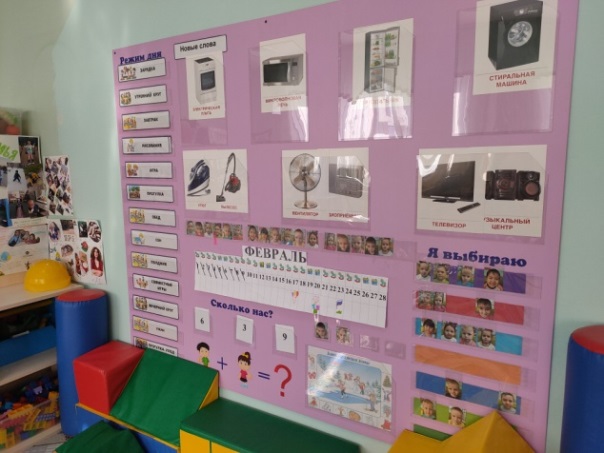 В нашей группе создана «говорящая» РППС, в которой принимают участие дети: пишут, рисуют правила, отгадывают загадки, участвуют в оформлении центров активности (каждый центр и оборудование имеют своё обозначение, используются схемы, алгоритмы и др.). В течение образовательной деятельности используются педагогические приёмы: «Утренний круг», «Новости дня», «Круг выбора центра активности».