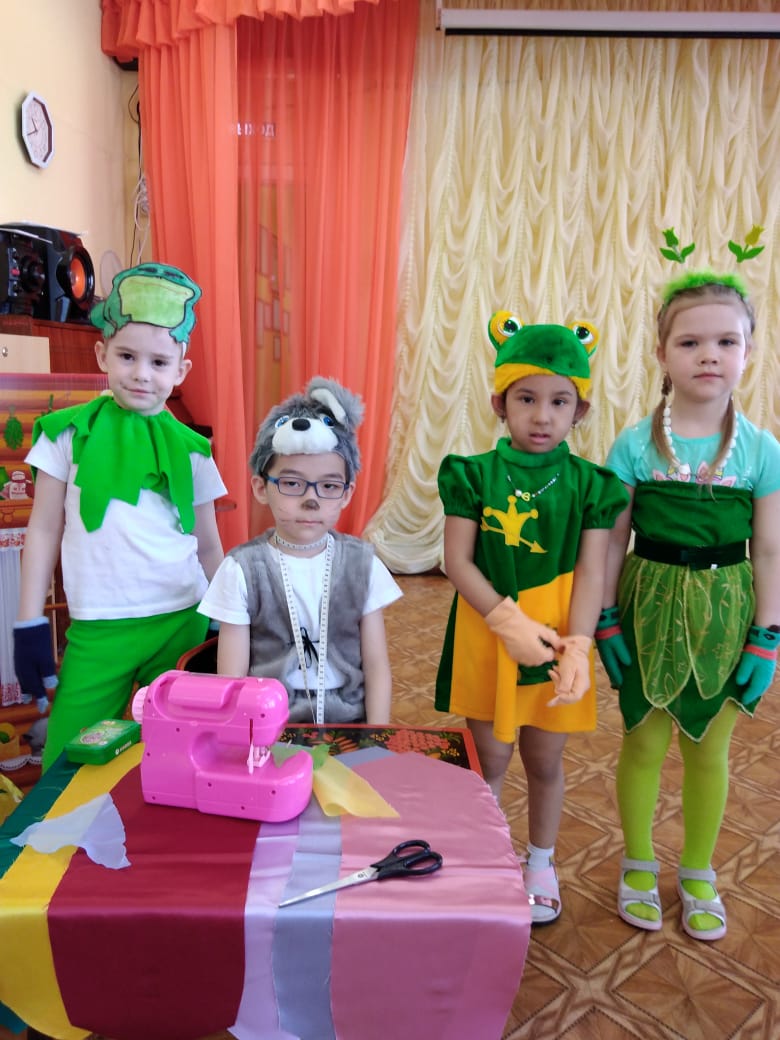 Одной из недавних наших представлений была театрализованная постановка по мотивам стихотворения С. Михалкова и сказки М. Ю. Картушиной «Заяц – портной» Мы придумали сказку о добром, трудолюбивом Зайчишке, который умел шить. Об этом узнали звери и принесли ему заказы, которые он добросовестно выполняет, старается всем угодить. Звери ему благодарны. Дружба сближает. Все потом веселятся, танцуют, встречают весну.