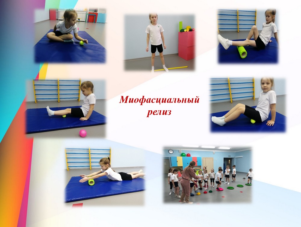 Многие дети чувствуют дискомфорт и боли при растяжке. Эту проблему мы решаем через использование современной техники миофасциального релиза. Для детского стретчинга применяется упрощенный вариант МФР, который дает возможность самостоятельно регулировать степень нажатия на мышцы и их растяжения, руководствуясь своими ощущениями. Суть заключается в самомассаже или массаже с помощью другого человека аппликаторами для МФР. Такой прием позволяет освободиться от мышечного напряжения, повышая эластичность фасций, улучшает подвижность в суставах, позволяет мышцам удлиняться и улучшает показатели гибкости. Так же эту технику можно использовать и для восстановления после физических нагрузок. Одним из плюсов МФР является доступность. Для занятий требуется аппликатор – это может быть массажный нежесткий мяч, мяч для большого тенниса или ролл массажный без протекторов. МФР может быть использован не только во время игрового стретчинга, но и в зарядке после сна, для того чтобы вызвать положительный эмоциональный настрой, подготовить организм к двигательной активности и способствовать укреплению здоровья воспитанников.