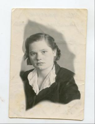 Переезд из села. «В 53-м году я уехала поступать в Прокопьевский медицинский техникум. С 53-го года по 56-й год училась в техникуме. В техникуме сложно было учиться! Тоже надо было оплачивать, надо было всё время… В общежитии тоже жила. Трудно было, очень трудно. Но надо было учиться, надо! Мама работала здесь на шахте уже, на Зенковской, а я в Прокопьевске. Я жила неделю там, а в субботу-воскресенье домой приезжала. Было очень трудно! На электричке, на автобусе можно было... Ну, а лето я всё работала в стройконторе. Ямки копали, доски там таскали – всё делали там такое, чтобы строителям помогать. Зиму я училась, а летом я работала!