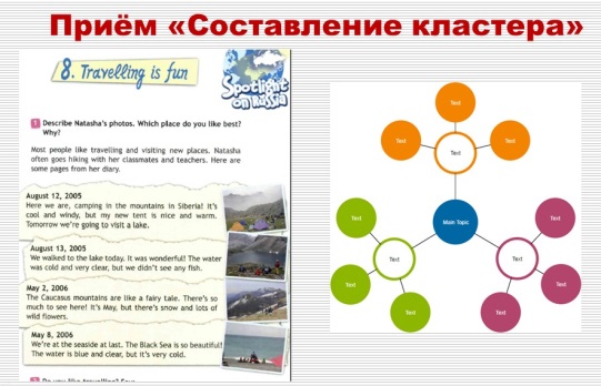 Прием «Кластер» может быть использован на разных этапах урока. На стадии вызова – для стимулирования мыслительной деятельности. На стадии осмысления – для структурирования учебного материала, на стадии рефлексии – для подведения итогов того, что учащиеся изучили.