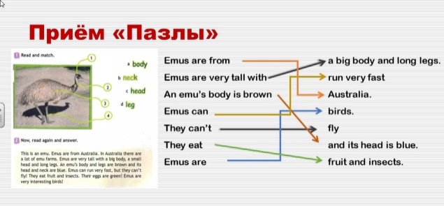 Прием «Пазлы»: учитель предварительно делит текст на несколько частей и перемешивает их. Ученики должны восстановить предложенный им текст в нужной логической последовательности. Обучающиеся могут работать в группах или индивидуально.
