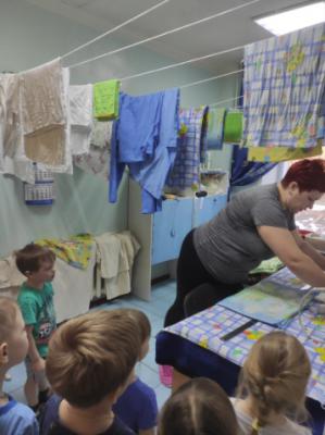 – Экскурсии «Больница – медсестра», «Кухня – повар», «Прачечная – прачка», «Детский сад – воспитатель», «Кабинет – логопед».