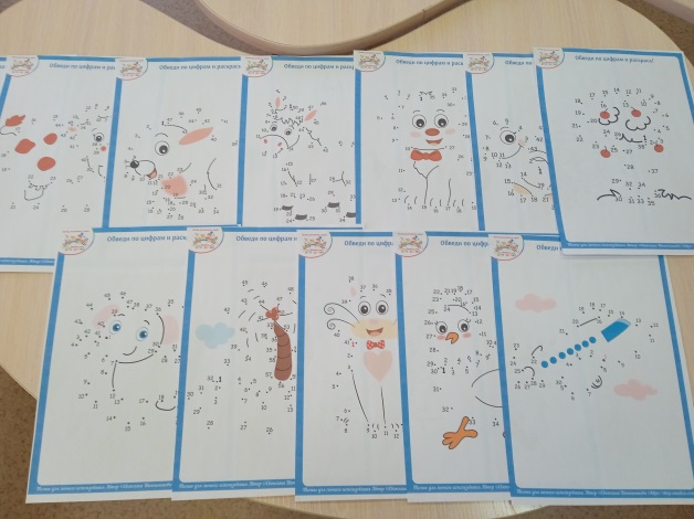 В уголке творчества периодически появляются новые интересные задания, например «Обведи по точкам и раскрась». Или «Рисование по номерам».