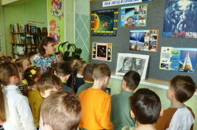 Для многих детей посещение библиотеки было первым в их жизни. А всё новое придаёт событию торжественности. Визит в библиотеку совпал с Днём космонавтики, поэтому нас познакомили с выставкой, посвящённой этому историческому событию.