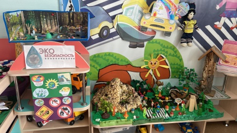 В дальнейшем эти атрибуты будут использоваться на занятиях музыки и спорта, а также на итоговом мероприятии. В группе создали центр Эко-безопасности, в котором дети изучили знаки «Безопасного поведения в природе». Для закрепления изученных знаков по экобезопасности обыгрывались жизненные ситуации: «Пожар в лесу», «На отдыхе», «Поход».